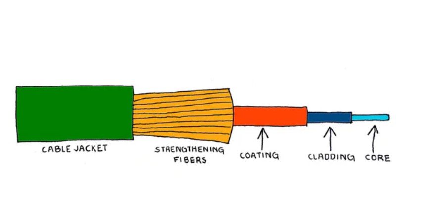 Cad iad na codanna a chuimsíonn struchtúr cáblaí snáthoptaice? Conas a théann na codanna seo i bhfeidhm ar a fheidhmíocht?